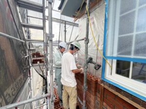 突然、現場へ行ったのですが、伊東棟梁・鈴木棟梁・煉瓦積みの職人さんたちにより、丁寧な説明やお話があり、細かな、煉瓦の積み方、おさまりなどを参考にして頂けたことと思います。ありがとうございました。