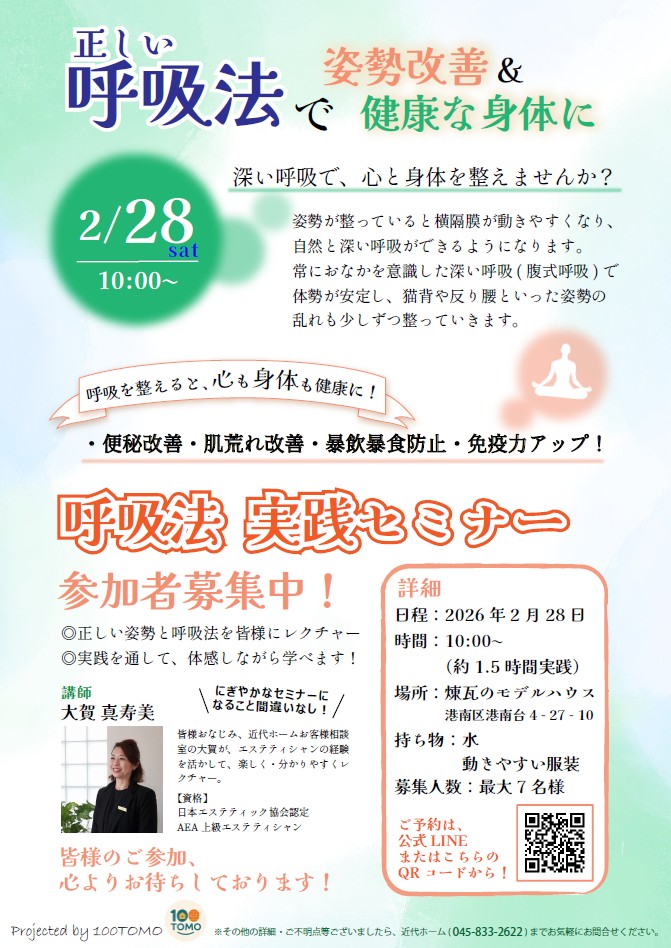2月28日(土)に、健康につながる正しい呼吸法の実践セミナーを行います🌬️