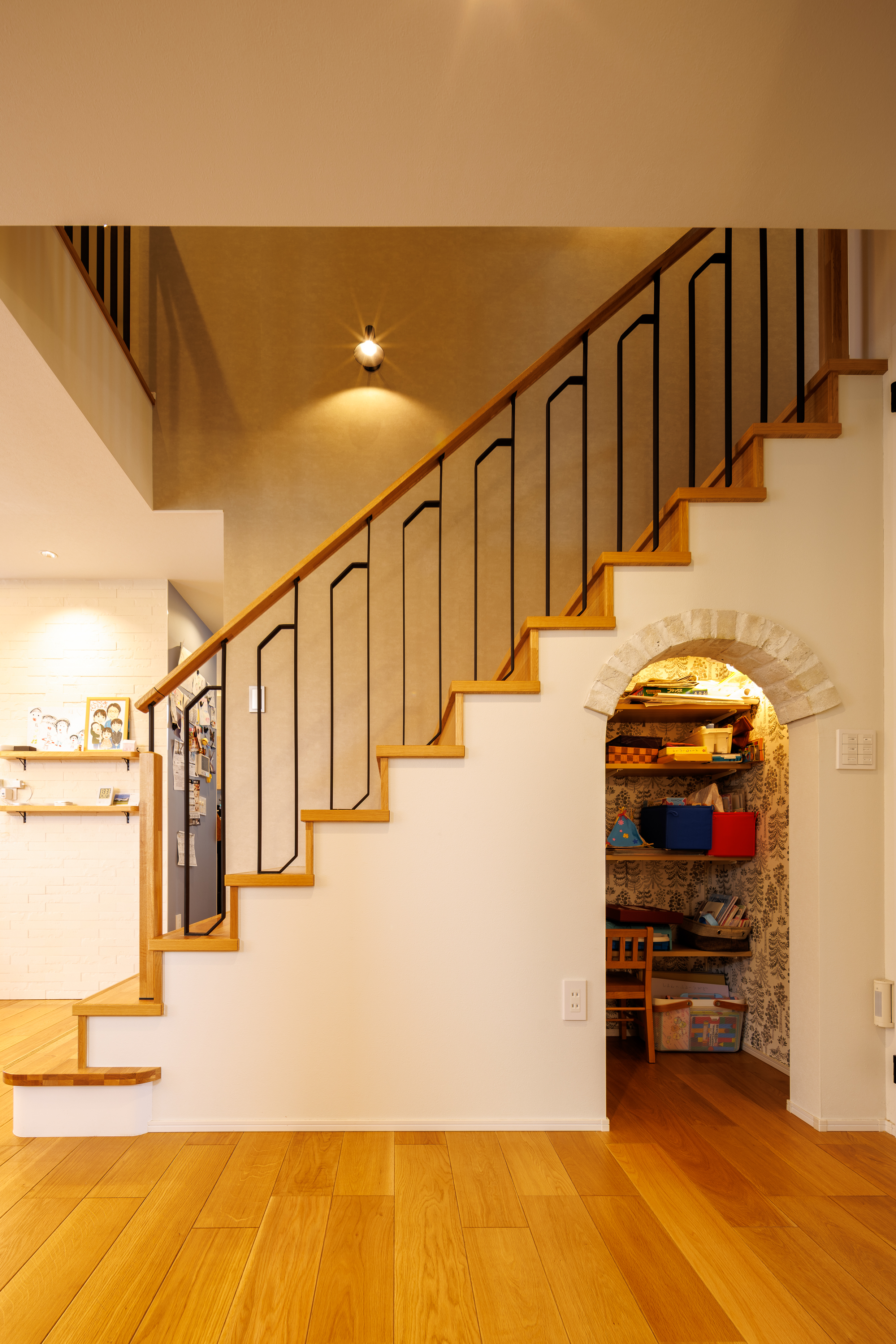 可愛いクロスやちょっとしたスペースで遊び心をくすぐりながら、回遊動線で暮らしやすさも実現しました。